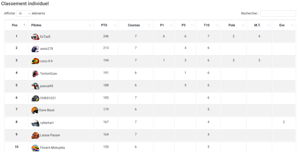 Résultats (championnat non terminé)